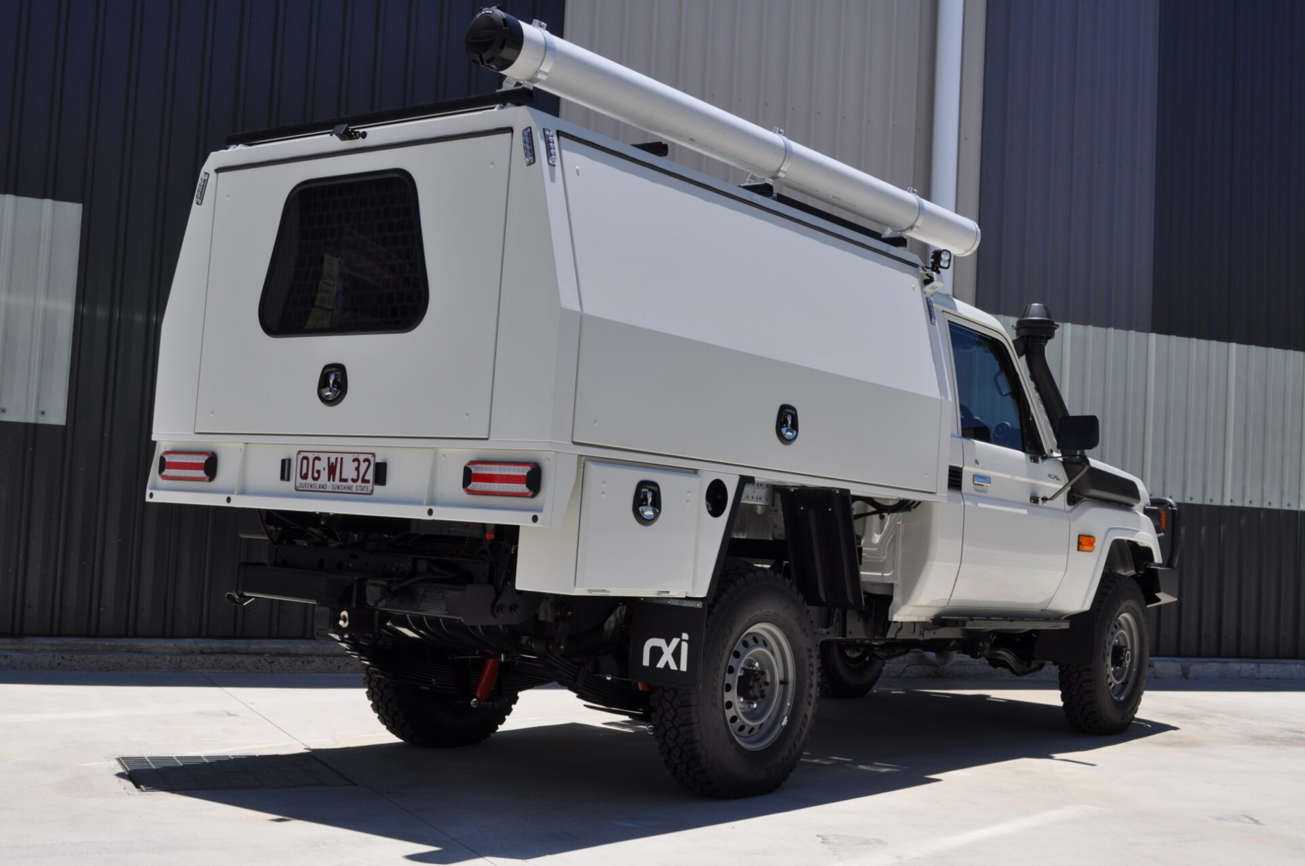 RXI delivered a fully customised Toyota LandCruiser 79 Series for RoadTek and TMR, engineered for durability, onsite safety, and utility fleet compliance. The build features a powered Canopex service body, upgraded storage with triple heavy-duty drawer units, a 15L water system, and a 45L fridge slide. With integrated LED work lighting, high-visibility amber flasher systems, HD reverse camera, solar capability, and a GVM+ upgrade, this vehicle is purpose-built for demanding civil and road maintenance environments.