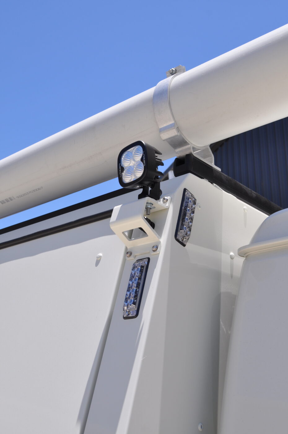 - Dual 25W heavy-duty LED work lights (independently switched from cabin) with dedicated shoulder-mount brackets.